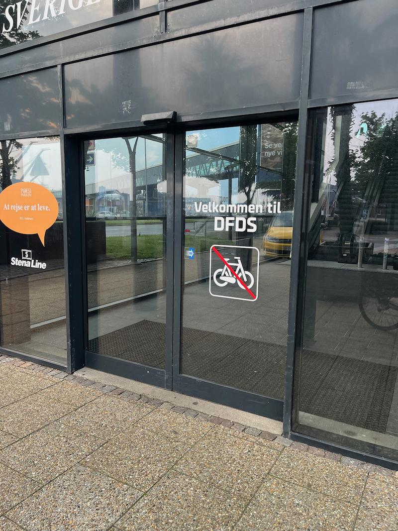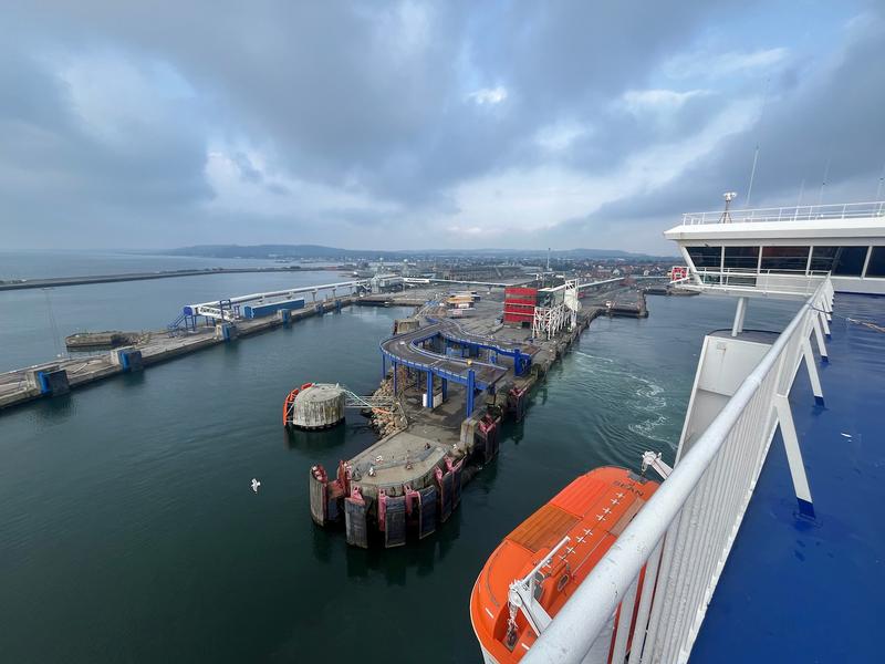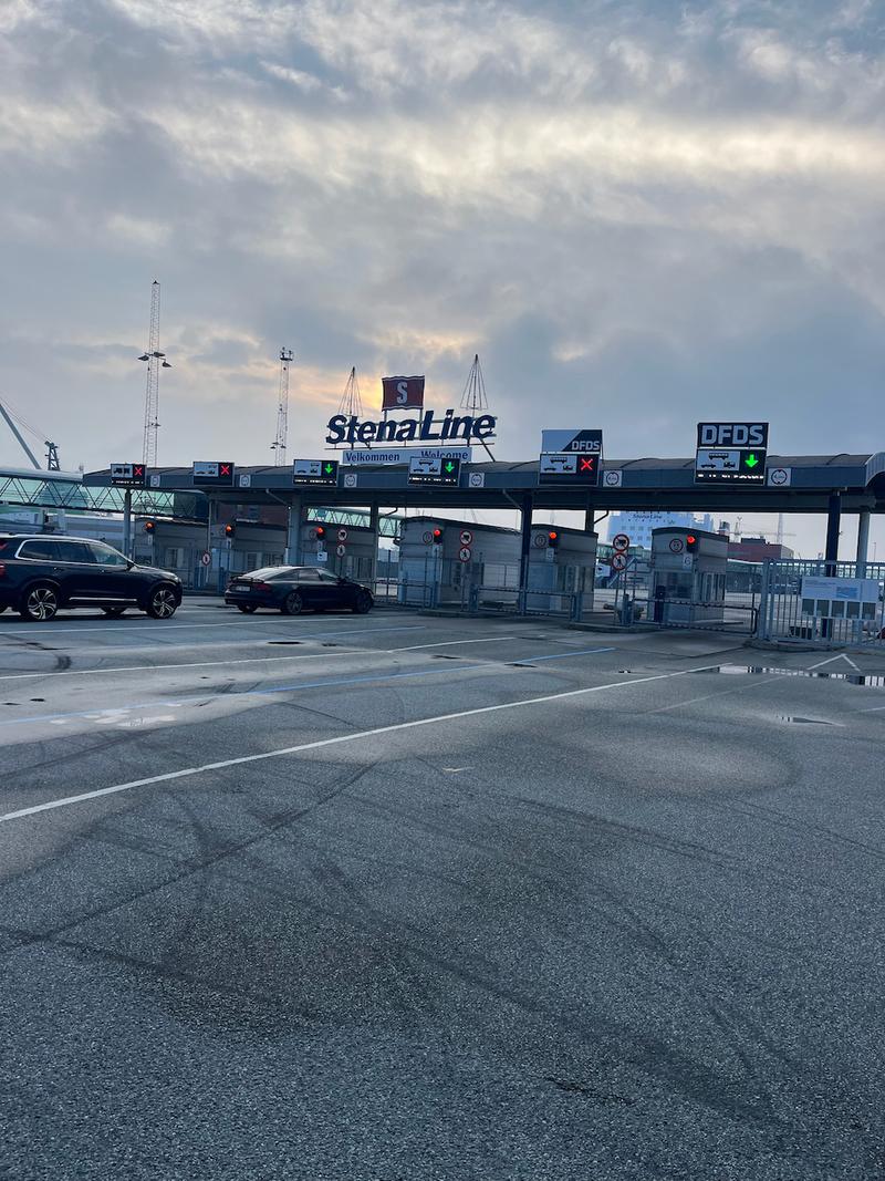 Die lohnt sich auch. Die Schilder an der Fähre zeigen nur Fahrradverbote, aber keines zeigt, wo Fahrräder dann tatsächlich hingehören. Also folge ich den Autoschildern und frühstücke vor der Schranke. Noch dürfen wir nicht rein.