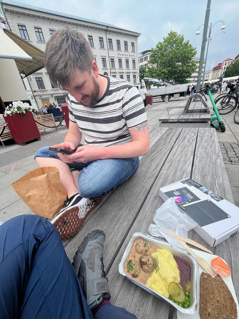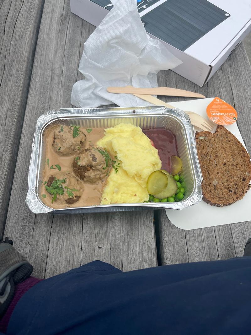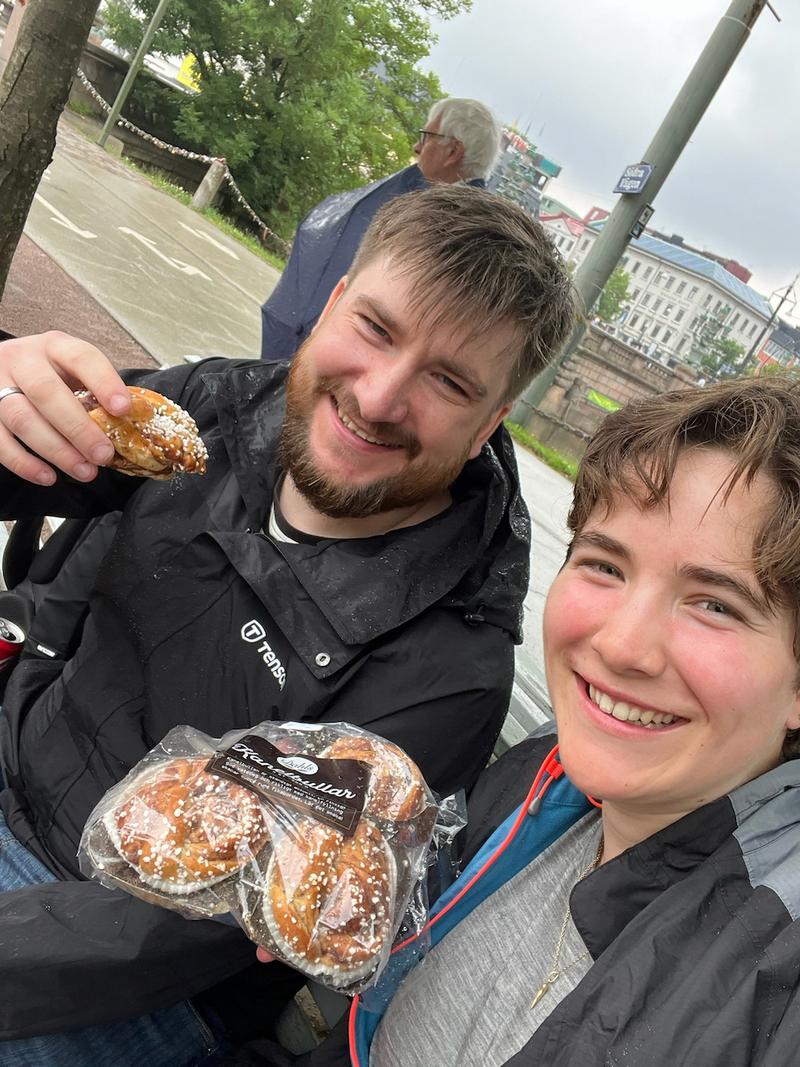In Göteborg holt mich Markus ab. Wir kennen uns von einem schwedischen Pfadfinderlager, bei dem wir vor fünf Jahren zu Gast waren. Seit 2020 hatten wir kaum Kontakt. Es ist schön, sich wieder auszutauschen. Er ist unglaublich hilfsbereit und fragt alles ab, was ich für mein Abenteuer noch gebrauchen könnte. Gemeinsam holen wir uns etwas zu essen, für mich Köttbullar (ich bin ja jetzt in Schweden). Zum Nachtisch gibt es Kanelbullar (Zimtschnecken, aber auch mit Kardamom!) aus der Bäckerei, in der Markus‘ Freundin arbeitet.